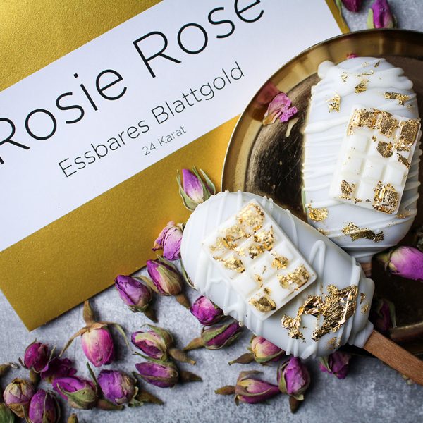 With the gold leaf foil from ROSIE ROSE, you can give your creations a touch of true luxury. Each leaf is made of 100 percent edible 24-carat gold and is attached to a fine carrier foil that makes precise placement particularly easy. The leaves are tasteless, vegan, and certified food-safe. You will receive five leaves per pack. The gold version measures 5 × 5 cm and is ideal for elegant accents on cakes, chocolates, pastries, or special dishes. Using fine tweezers, the leaves can be applied effortlessly and without breakage, allowing you to create even intricate details neatly and with control.