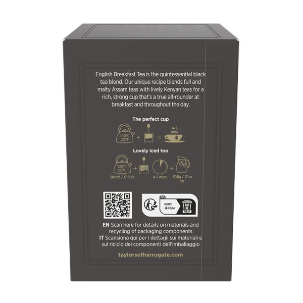 English Breakfast Tea is a true classic. It’s a full-flavoured and deeply satisfying blend which Taylors makes with bright African and malty Assam teas. It can be enjoyed at breakfast and throughout the day.