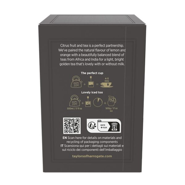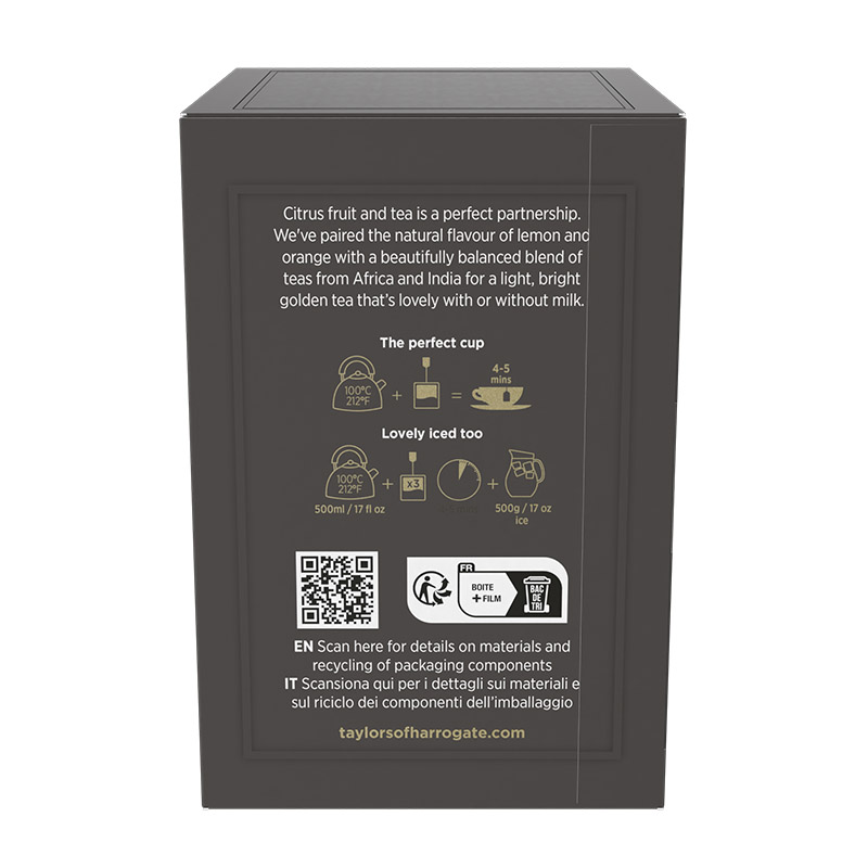 Taylors created this delicate fruity blend using light teas from Africa and high-altitude teas from India – paired with the vibrant, zesty flavours of lemon and orange.