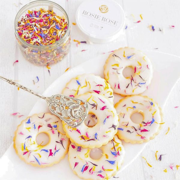 Com as centáureas secas de cores clássicas da ROSIE ROSE, pode dar um toque especial de cor a bolos, chocolates, cocktails ou saladas. As delicadas pétalas conferem elegância natural a qualquer prato e são versáteis na sua utilização, seja para o dia-a-dia ou para ocasiões especiais. As flores são insípidas, 100% comestíveis e livres de pesticidas. São cuidadosamente processadas à mão e secas delicadamente ao sol para garantir a preservação ideal da sua estrutura e cor.