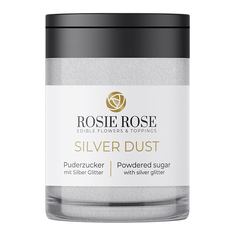 O Silver Dust é preparado a base de açúcar em pó de alta qualidade com glitter colorido. É adocicado sem presença de outros sabores sendo ideal para doces finos, bebidas quentes ou detalhes elegantes em bolos.