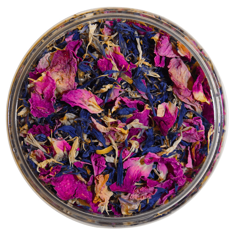 O mix de flores Blue Saphire da ROSIE ROSE combina as cores e a fragrância das Mil e Uma Noites. A mistura é composta por pétalas de rosa damascena, centáureas e flores de calêndula cuidadosamente selecionadas. Esta mistura de flores comestíveis é perfeita para decorar sobremesas, assados ??ou como ingrediente em misturas de chá. Acrescenta um toque visual atraente e uma delicada nota floral que deleita os sentidos.