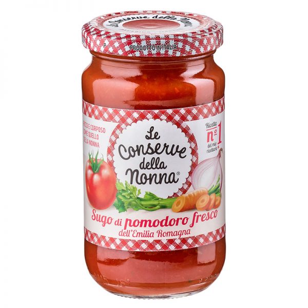 Feito apenas com apenas tomates italianos frescos e vegetais levemente salteados, o Molho de Tomate Le Conserve della Nonna está pronto para uso. Basta aquecer levemente e despejar sobre uma massa: Ideal para receitas rápida e simples que certamente serão um sucesso.