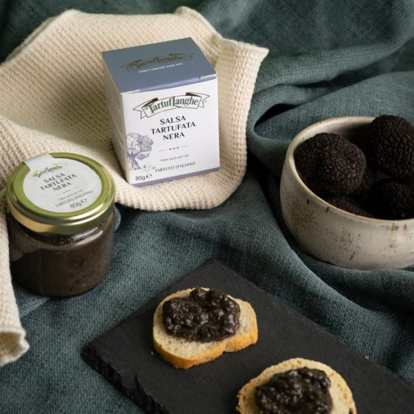 Os molhos de trufas da tartuflanghe contêm ingredientes seleccionados, sem conservantes nem aditivos. O Molho Tartufata com trufas negras é Saboroso e versátil, é ideal para canapés, sandes, focaccia, pizza, massas, pratos de carne e de peixe, legumes e ovos.